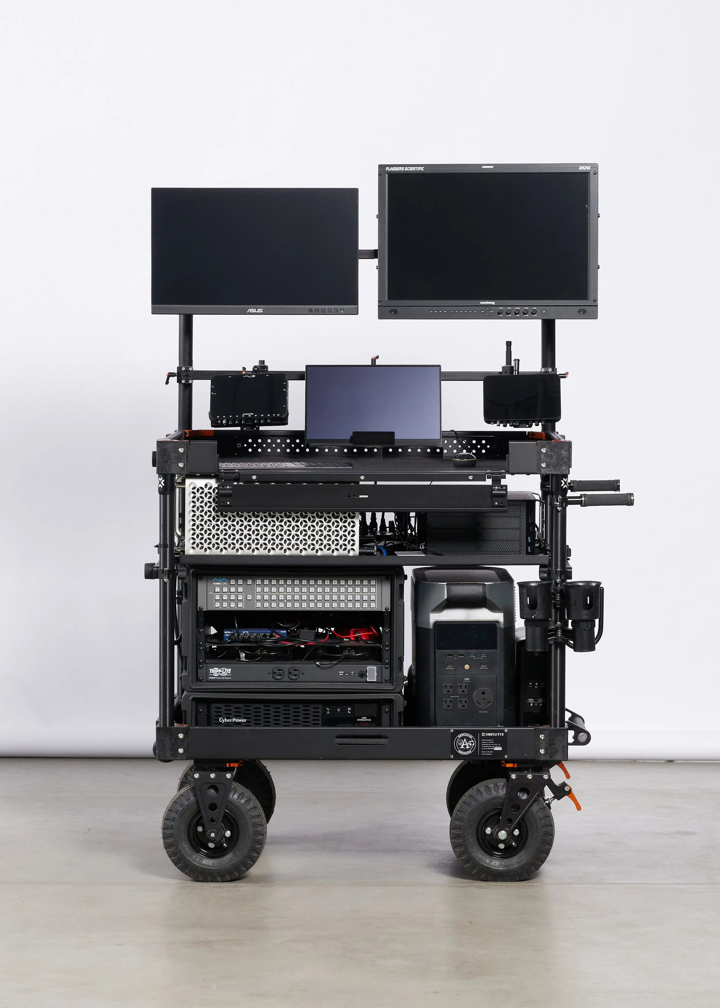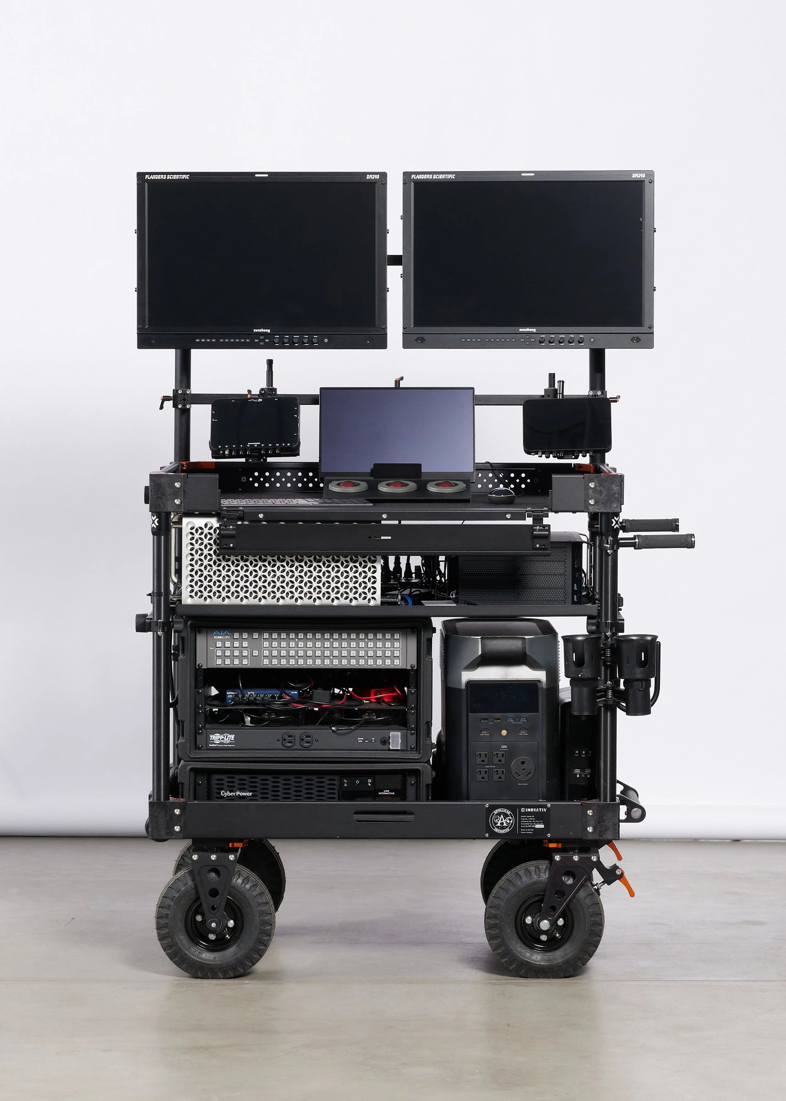 ***Includes Apple Mac Pro, ASUS 24in GUI Monitor, Flanders Scientific DM220 OLED Color Calibrated Monitor, Odyssey 7Q+ Scopes Monitor, AJA Kumo 3232 SDI router, (2) FSI BoxIO LUT Boxes, DMON Quad 4 Camera Hub, Tangent Element Tk/Kb Control Panels, Inovativ Apollo 40in Cart, EcoFlow Delta Pro Battery, Battery Backup, Select Camera Card Readers